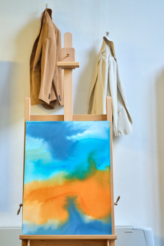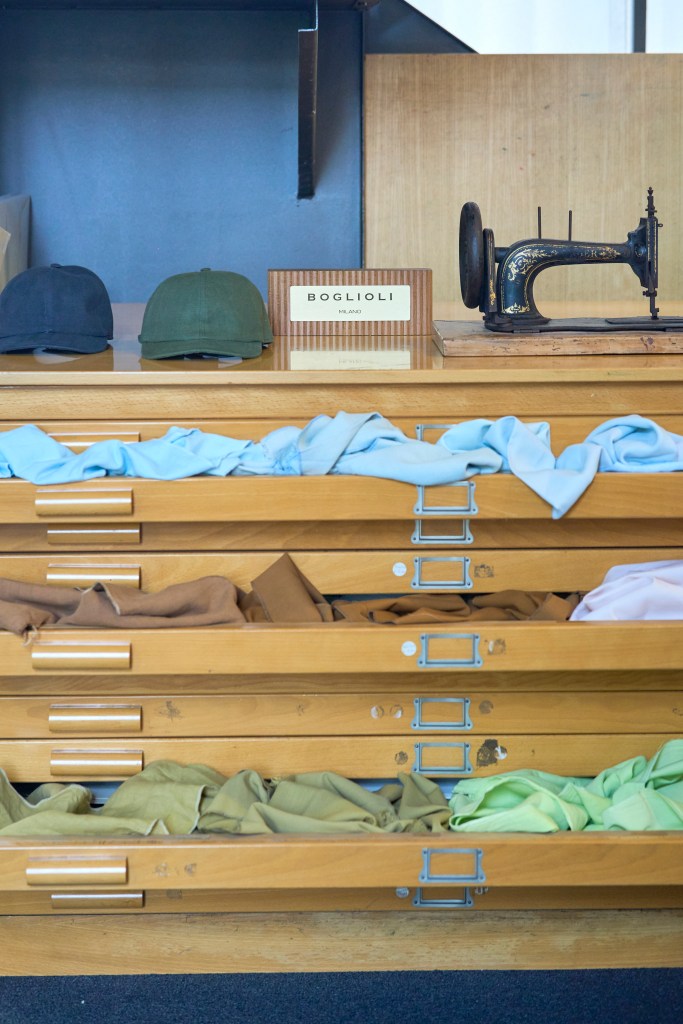 Crespi Brera è la storica bottega milanese nata nel 1880, diventata negli anni un punto di riferimento per artisti, filosofi e studenti dell’Accademia di Brera. Luogo denso di fascino e memoria, unisce tradizione e sperimentazione in un’atmosfera dove materiali e colori raccontano storie d’estro e genialità. L’Atelier, vero laboratorio di creatività, forma da sempre giovani artisti e si delinea come luogo d’incontro che ha ospitato artisti del calibro di Lucio Fontana e Piero Manzoni. In questa splendida unione di moda e arti figurative, Boglioli e Crespi Brera trovano un terreno comune in un’eredità condivisa di storia, innovazione, artigianalità e in particolare di colore, in uno spazio che celebra la bellezza, la ricerca e la contaminazione tra discipline.