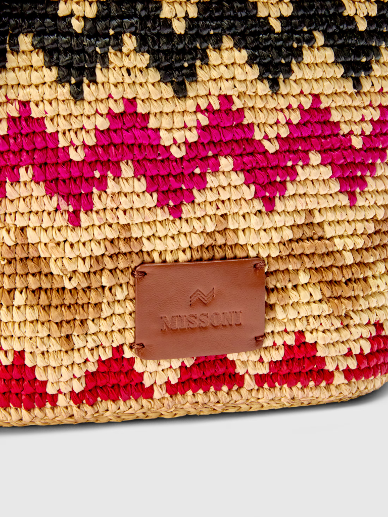 Borsa secchiello in rafia con dettagli in pelle e motivo zig zag – Missoni