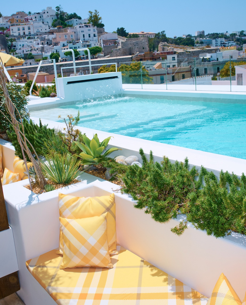 Il celebre check si declina in una versione estiva e contemporanea che colora la terrazza panoramica e persino una barca brandizzata che solca le acque dell’isola.