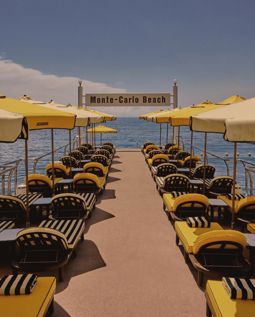 Fondato nel 2009, il brand di Simon Porte Jacquemus firma il look estivo del Monte-Carlo Beach.