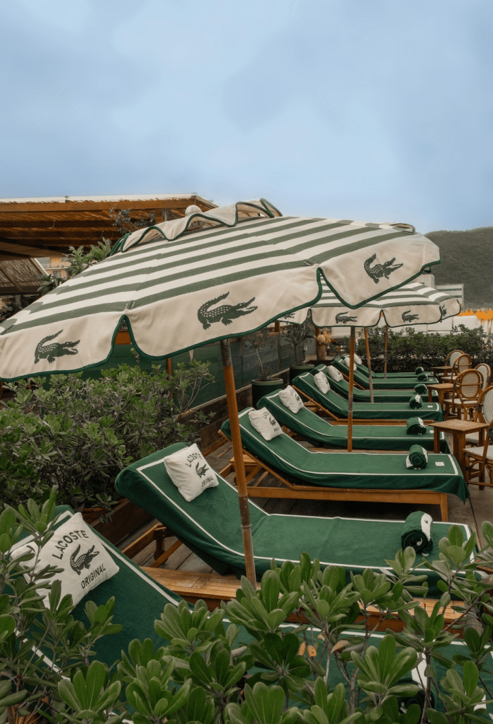 Fondato nel 1933 da René Lacoste, il brand del coccodrillo trasforma Tigu Beach a Sestri Levante. Teli mare, ombrelloni e cuscini brandizzati diventano protagonisti di un’estate all’insegna dello sportswear elegante. Lanciate anche due fragranze dedicate.