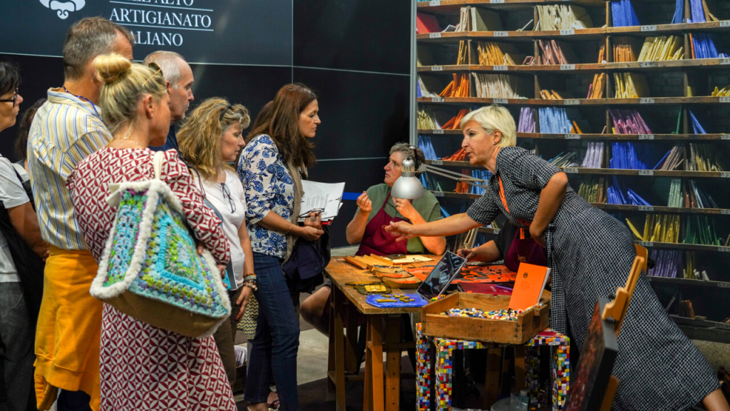 Non solo gioielli e accessori, sculture e opere artistiche, arredo e complementi, rilegatura e lavorazione della carta, illuminazione e lavorazione dei metalli, lavorazione del marmo e delle pietre, arte del vetro, merletti e tessitura, restauro artistico e conservativo, rivestimenti artistici, liuteria, alta sartoria e lavorazione della cartapesta, pianoforti, ombrelli, calzature: il 2025 accoglie nuove eccellenze con più di 90 dimostrazioni dal vivo, che sveleranno ai visitatori la potenza evocativa del gesto artigiano.