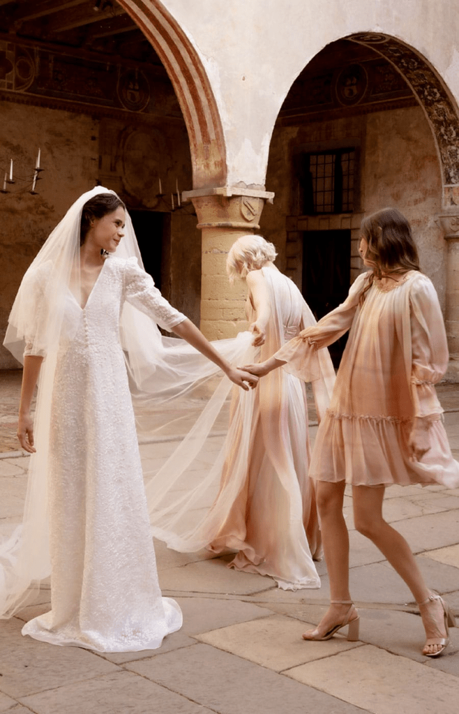 Le maison italiane storiche come Alberta Ferretti e Luisa Beccaria hanno da tempo fatto del romanticismo il proprio linguaggio visivo. Ma oggi sono soprattutto i brand emergenti a reinterpretare il trend con un approccio fresco e inclusivo. Tra questi spiccano Blazeé Milano, con i suoi completi velati dalle linee sartoriali soft, e Themoirè, che fonde materiali sostenibili con design fluttuanti e sensuali.
