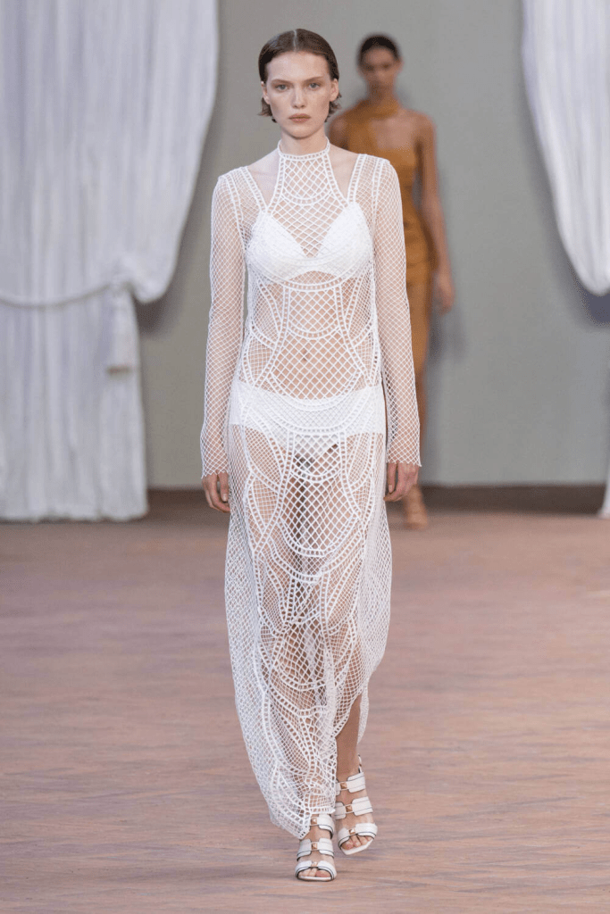 Questa tendenza rappresenta una vera e propria risposta all’estetica iperstrutturata degli anni precedenti. Le silhouette si fanno fluide, ariose, quasi liquide. Le trasparenze non sono più provocatorie, ma poetiche: mostrano senza ostentare, suggeriscono invece di imporre. Il corpo è svelato solo in parte, lasciando spazio all’immaginazione.