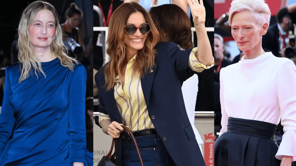 Quest’anno il Festival è un tripudio di stelle. Sul tappeto rosso abbiamo visto sfilare Julia Roberts, per la prima volta al Lido, fasciata in un abito di haute couture Versace by Dario Vitale, e George Clooney, che ha conquistato la folla con il suo charme intramontabile. Grande attenzione per Emma Stone, magnetica in un look trasparente ricamato di cristalli firmato Louis Vuitton custom made, e per Cate Blanchett, che ha scelto un abito scultoreo di Armani Privé, simbolo di un’eleganza contemporanea e sofisticata.