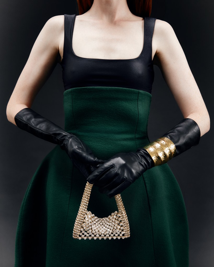 Le borse di Benedetta Bruzziches non nascono da un moodboard, ma da un incontro — con una figura reale o immaginaria, con un ricordo, con un’idea di femminilità mai definitiva, sempre in movimento. Vitty, Mame, Elif, Amalia: ognuna di loro è una storia incarnata, un omaggio affettuoso e profondo a donne che hanno avuto il coraggio di essere, di sbagliare, di non farsi contenere. Dietro ogni modello, c’è una figura che abita con grazia e intensità i margini del canone, sovvertendolo dall’interno.
