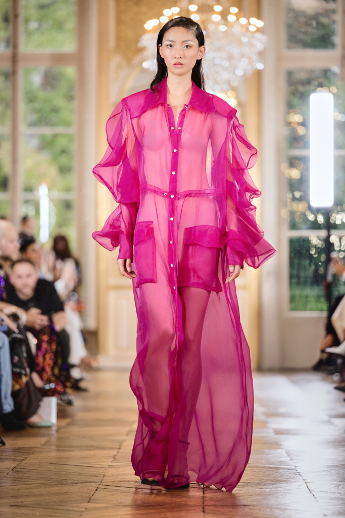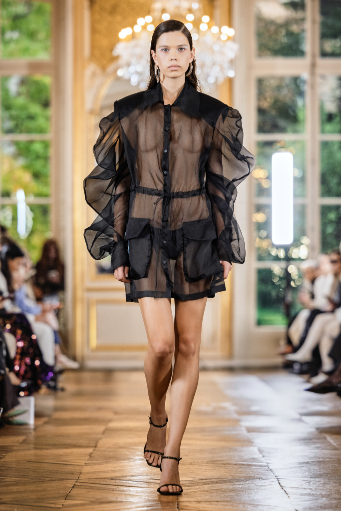 Le trasparenze vengono rielaborate in chiave audace e contemporanea: mai gratuite, ma cariche di significato. Sagio le utilizza per evocare emozione e vulnerabilità, ricordandoci che la delicatezza è una forma di forza.