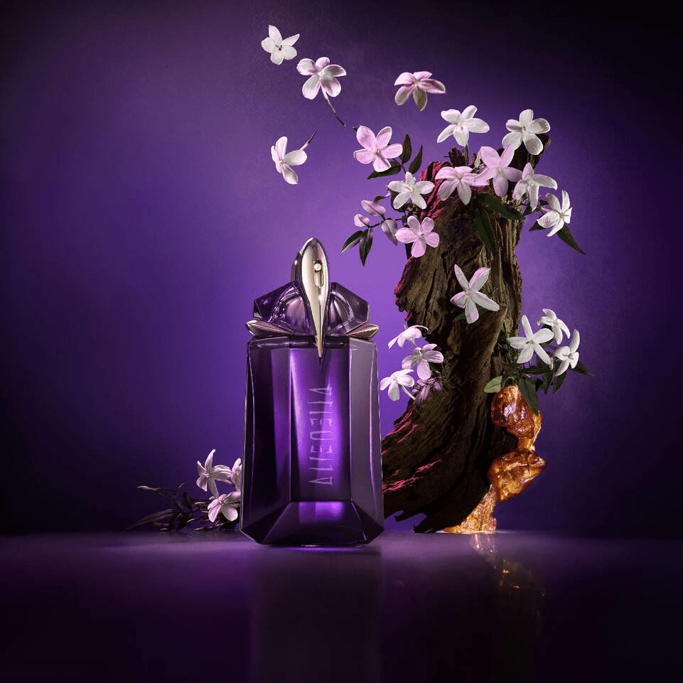 Il suo flacone, un talismano viola scolpito come una pietra preziosa, racchiude un’aura quasi divina. Mugler lo immaginava come un oggetto di potere, un amuleto per donne straordinarie, consapevoli della propria forza, pronte a lasciare una traccia invisibile eppure indelebile. Se Angel è un morso di piacere, Alien è una rivelazione silenziosa: un profumo che trasforma chi lo indossa in presenza, in luce.