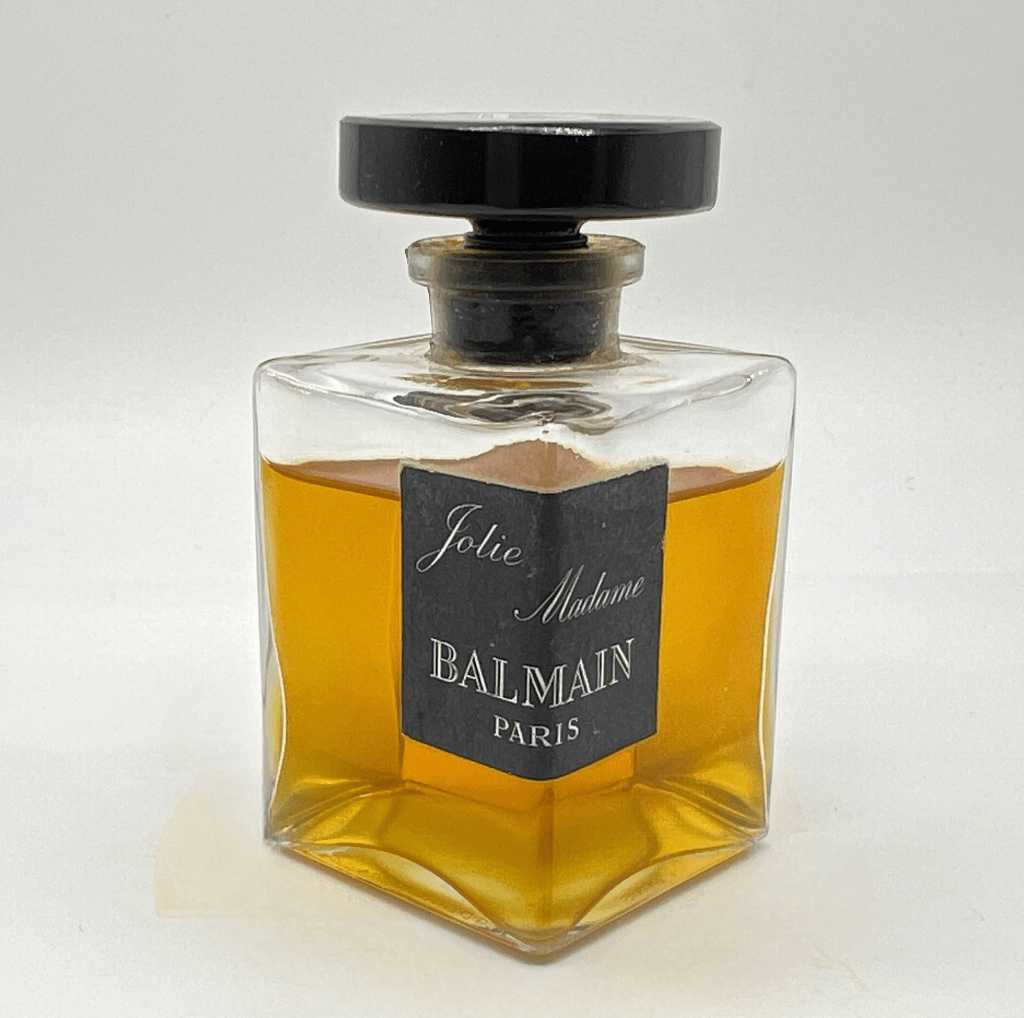 Nel 1953 la maison lancia Jolie Madame, forse il profumo più emblematico del primo Balmain. È una fragranza cipriata e sofisticata, che racconta una donna consapevole del proprio potere, raffinata ma viva, lontana da ogni idealizzazione ingenua. Jolie Madame diventa un simbolo della Parigi couture degli anni Cinquanta e rafforza il legame tra la maison e una profumeria di carattere, fatta di struttura e profondità.