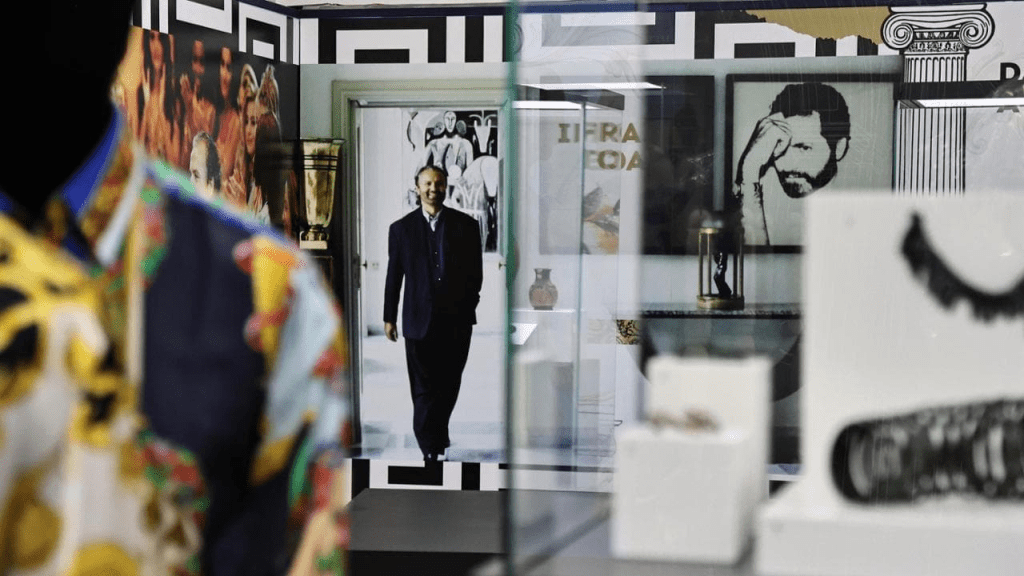 Bozzetti, libri, appunti, polaroid, manifesti e interviste permettono al visitatore di entrare nel laboratorio mentale di Versace. Le testimonianze dei collaboratori storici, come Bruno Gianesi e Manuela Brambatti, restituiscono il ritratto di uno stilista rigoroso e colto, capace di unire visione artistica e disciplina progettuale, artigianalità italiana e respiro internazionale.