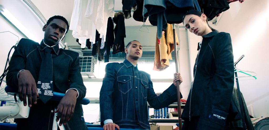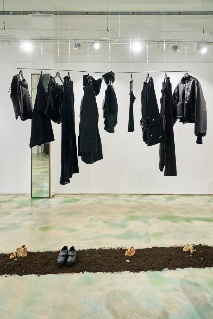 Victor Hart lavora invece sulla tensione tra forma e istinto. Le sue collezioni sono racconti emotivi, quasi cinematografici, dove il corpo diventa superficie narrativa. Tessuti, volumi e layering sembrano rispondere più a uno stato d’animo che a una tendenza, restituendo una mascolinità fragile, intensa, profondamente attuale.