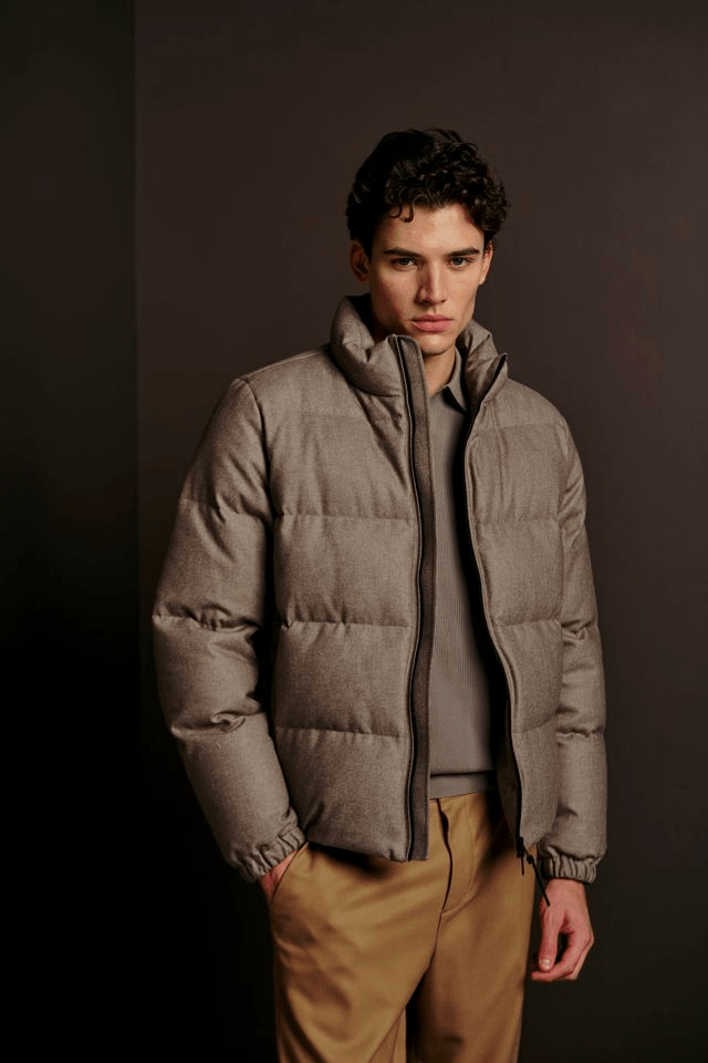 Accanto a questa visione sartoriale del denim, After Label si presenta a Pitti Uomo con una collezione che racconta l’inverno come territorio da esplorare con leggerezza, tecnica e immaginazione. La FW 26-27 rappresenta un momento di svolta per il brand, che amplia il proprio orizzonte oltre l’outwear, mantenendo intatta la propria identità urbana e contemporanea. I nuovi modelli introducono vestibilità aggiornate e imbottiture più leggere, studiate per offrire protezione e fluidità, mentre nylon tecnici di nuova generazione, jacquard raffinati e cordura performante definiscono un guardaroba dal carattere deciso e sofisticato.