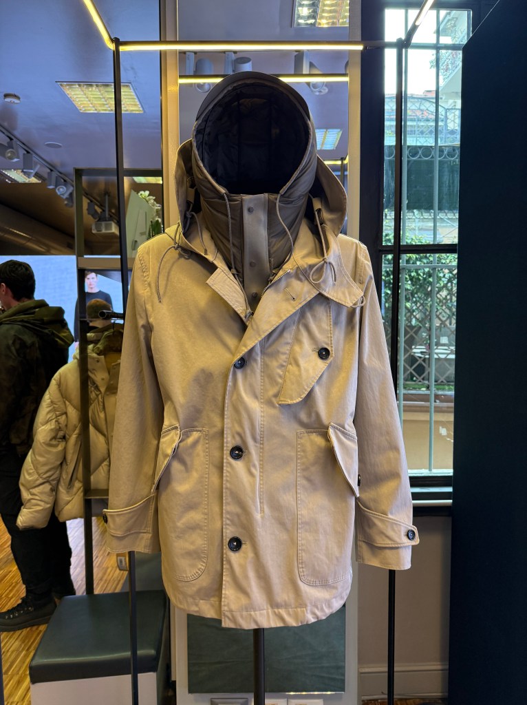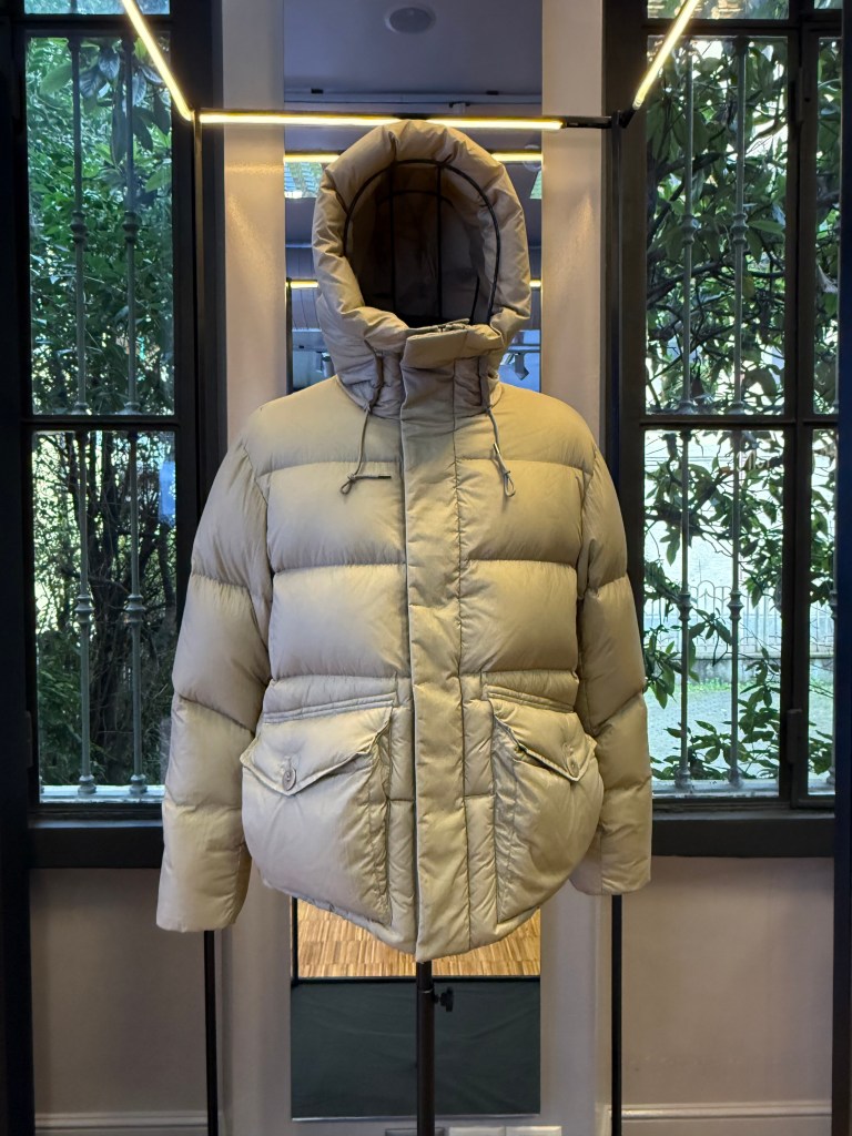 Accanto all’OJJ, la collezione sviluppa un lavoro raffinato sui nylon tecnici e sugli imbottiti ultralight. Leggeri, tinti in capo, dalla mano sorprendentemente morbida, questi materiali costruiscono capispalla pensati per un uso quotidiano e dinamico. Il Nylon Crinkle Combo OJJ, con la sua superficie strutturata e l’identità marcatamente militare, riafferma uno dei codici più riconoscibili del brand, mentre nuovi modelli introducono soluzioni modulari che rafforzano l’idea di un guardaroba flessibile e intelligente.