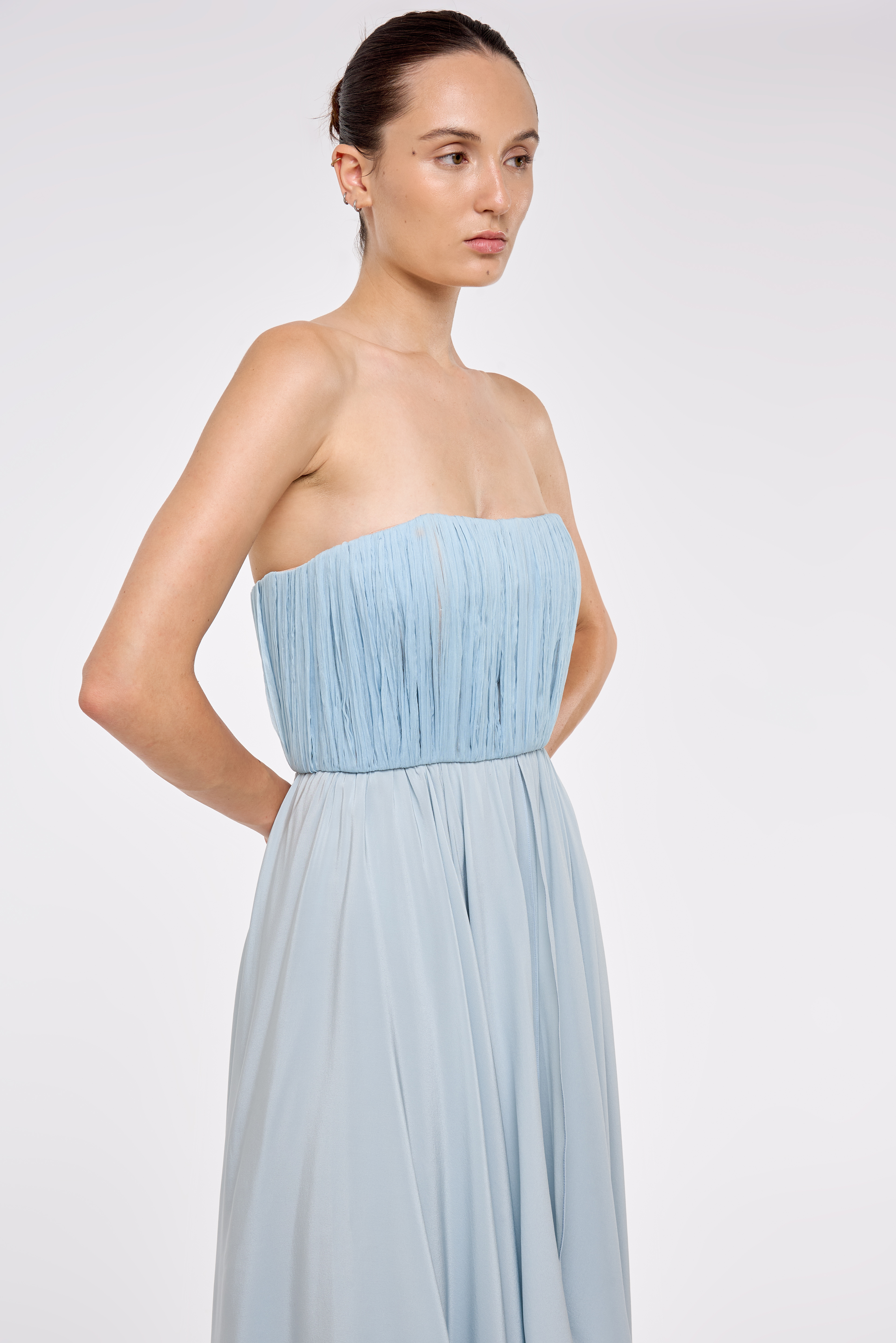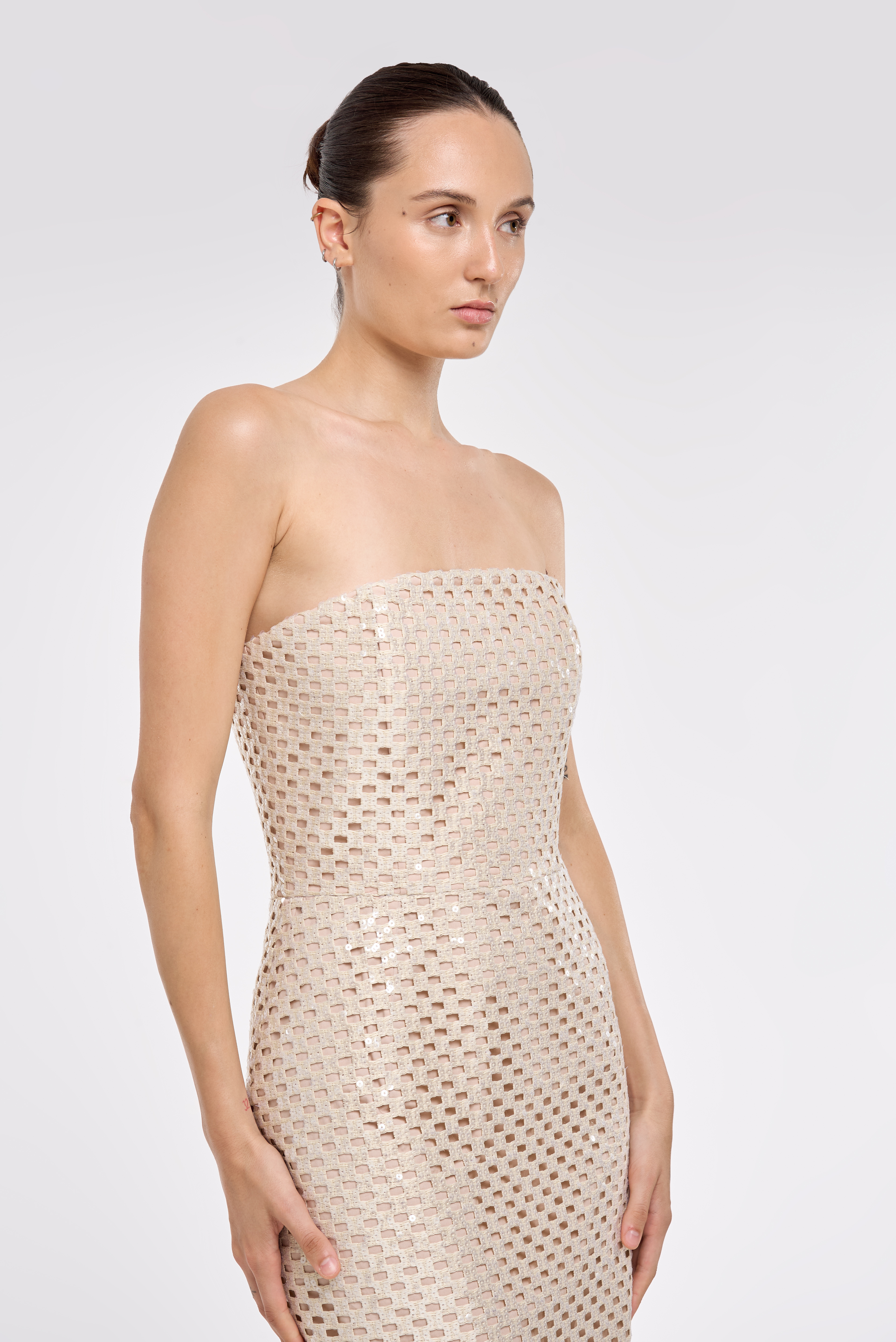Ad aprire il racconto è SU, brand che nasce con l’intento preciso di farsi interprete di una nuova modernità. Una modernità raffinata, mai ostentata, costruita attraverso un attento studio dei volumi e delle forme. Ogni capo è pensato come un esercizio di equilibrio tra estetica e funzione, dove le linee essenziali dialogano con palette neutre per dare vita a creazioni versatili e fortemente riconoscibili. L’alta maestria produttiva e la cura delle lavorazioni conferiscono ai capi SU una raffinatezza silenziosa, fatta di dettagli misurati e di un’eleganza che si rivela nel tempo. La donna SU ricerca un minimalismo sartoriale, fatto di tagli precisi, volumi armoniosi e dettagli garbati ma presenti, scegliendo capi che diventano veri simboli di sofisticatezza contemporanea.