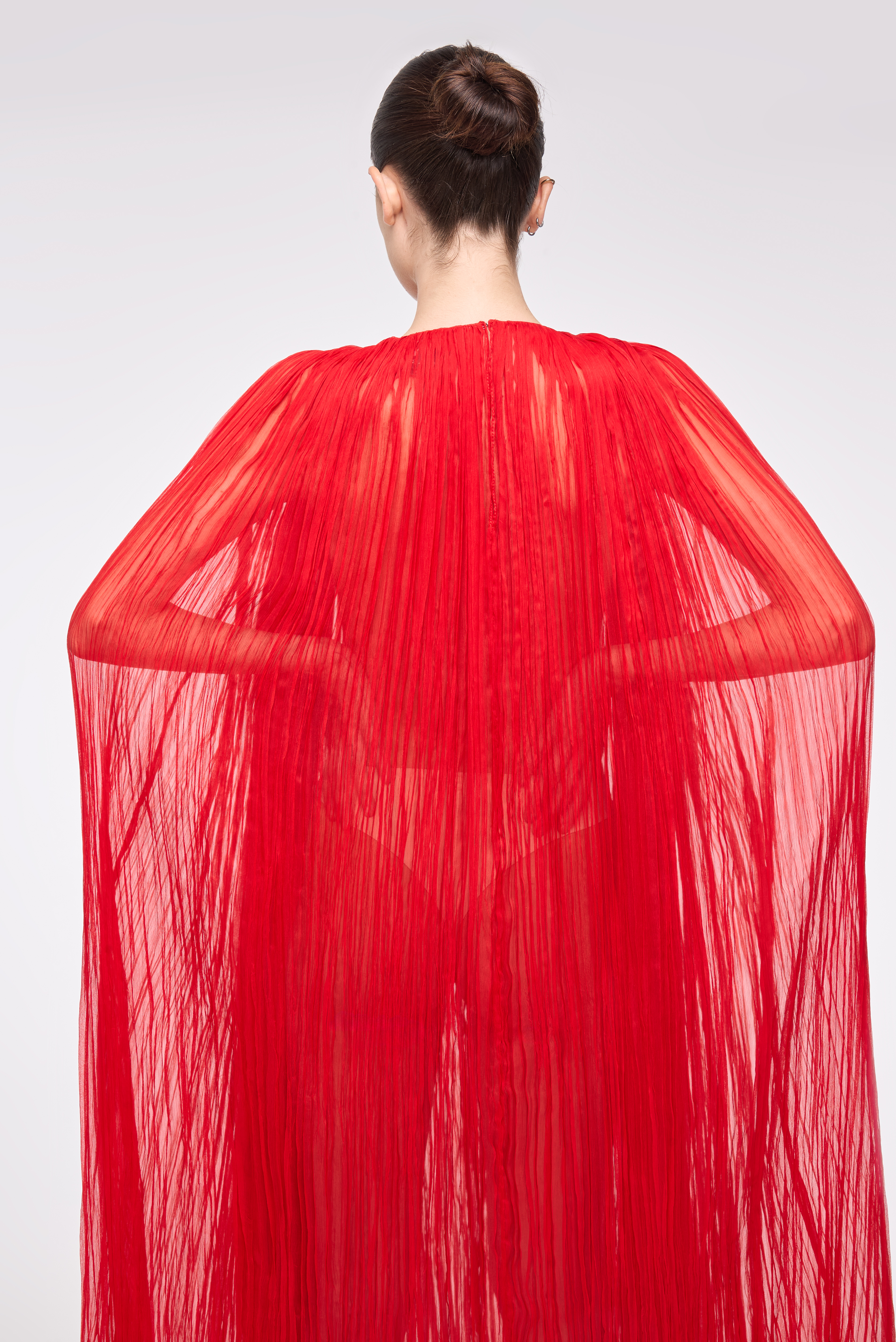 Mantelle, cappe e silhouette fluide superano le distinzioni di genere e stagione, diventando veri elementi di espressione. Indossare Federica Bonifaci significa scegliere una moda che dialoga con l’arte, che avvolge il corpo senza costringerlo e che trasmette forza, presenza e autorevolezza.