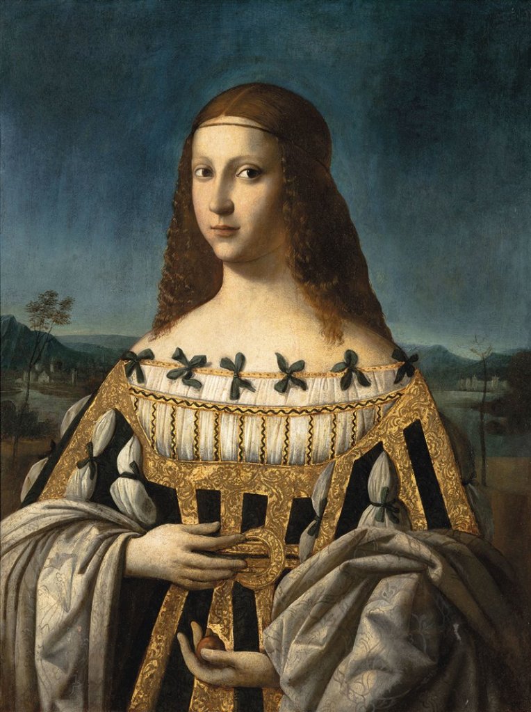 Figlia di Papa Alessandro VI, Lucrezia fu a lungo descritta come una donna fatale, esperta nell’arte del veleno, capace di usare la bellezza come arma. La storiografia contemporanea ha in parte ridimensionato questa immagine, restituendole il profilo di una donna colta e politicamente consapevole, ma il mito della sua ambiguità continua a esercitare un fascino potente, alimentando la leggenda di una femminilità capace di unire grazia e distruzione.